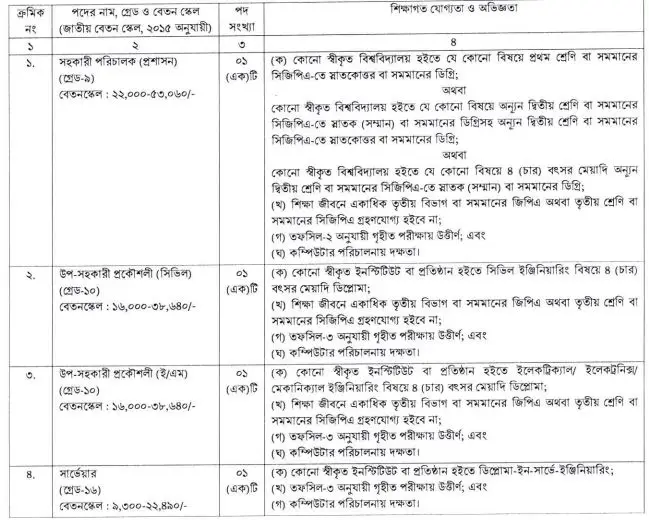 বয়স: ২৮ সেপ্টেম্বর ২০২৫ তারিখ ১৮-৩২ বছর। তবে ১নং পদের ক্ষেত্রে বিভাগীয় প্রার্থীদের জন্য ৩৪ বছর পর্যন্ত শিথিলযোগ্য।