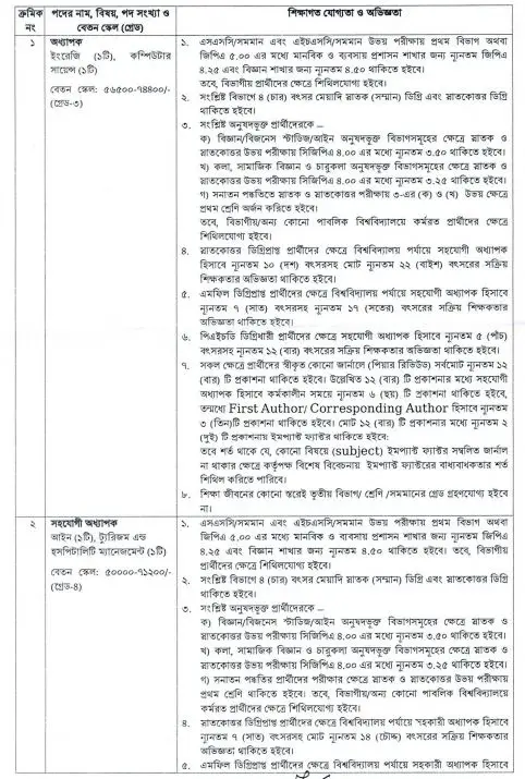 জাতীয় বিশ্ববিদ্যালয়ের বিভিন্ন বিভাগে ৪টি পদে ২৪ জন শিক্ষক নিয়োগ দেওয়া হবে। আগ্রহীরা ২০২৬ সালের ৫ জানুয়ারি বিকেল ৪টা পর্যন্ত আবেদন করতে পারবেন। ডাকযোগে অথবা সরাসরি আবেদনপত্র পাঠাতে পারবেন।